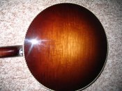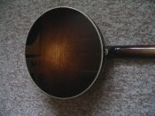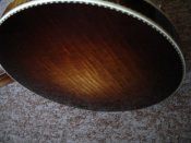 Wood: curly maple (sunburst) , Pre-war aloy,special labor flathead tonering, tube and plate flange,3 ply curly maple rim, nickel plated of metal parts with gold some hardware. Five- Star pegs, Engraved armrest and pearl inlays, Clamshell tailpiece, ivoroid binding with wood purfling.